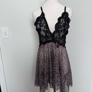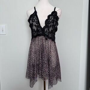 Black Lace and Leopard Print babydoll Dress lingerie 2X goth glam whimsigoth
