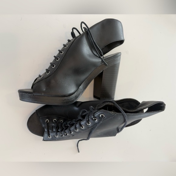 Black Lace-Up Block Heel Sandals • UK 6 / EU 39 / US 8 • NWOT