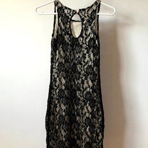 Black Laced Sleeveless Mesh Dress with Cream Coloured Inner Lining