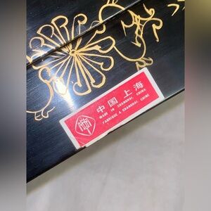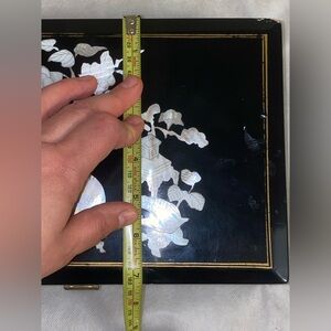 Black Lacquered Jewelry Box with Inlay Design. Vintage (1960-70’s)