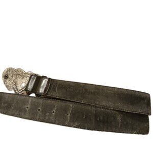 Black Leather Belt Rare Vintage Southwestern Kudos Silver Triple Heart Buckle-36