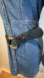 Gorgeous black leather belt featuring a stylish gold buckle with stone detail.