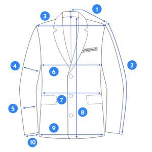 1.Collar to Shoulder: 9" 2. Shoulder to Sleeve: 26.5" 3.Shoulder to Shoulder: 15.5" 4.Upper Arm Width: 5" 5.Forearm Width: 4.5" 6.Chest Width: 19" 7.Waist Length: 17.5" 8.Front Length: 31" 9.Hip Width: 18" 10.Sleeve Hole Width: 5"