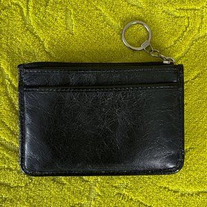 Black Leather COACH Poppy Zipped Wallet Key Ring Card Holder Silver Design EUC