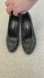 Black Leather Dollhouse heels .