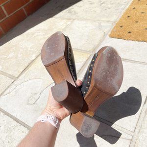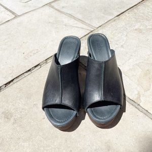 Like new wooden heel/black leather Eva mules from Ten Points.