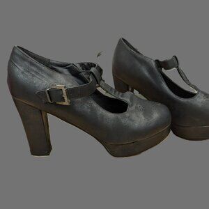 Chunky platforms and heel hit the mark for 90's, lolita or goth fashion.