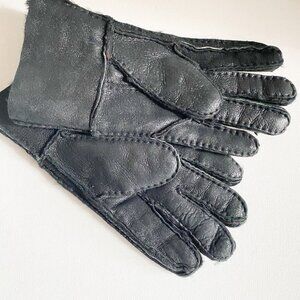 Black Leather Sheepskinlined Raw edge Men's Black Gloves XL
