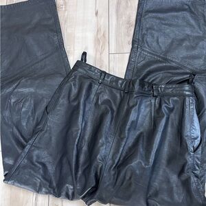 Black Leather Straight Leg Pants