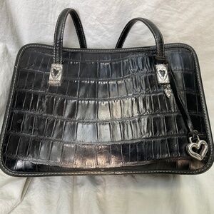 This structured shoulder bag is in excellent, clean condition, inside and out. There is a bit of wear to the silver hardware, primarily the Brighton signature heart-shaped bag tag. This is a classic Brighton bag.