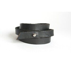 This leather bracelet will become a staple in your everyday jewelry collection. Created with genuine black leather that's 10mm wide and 2mm thick, with a silvertone stud closure. It's slightly adjustable with 2 holes to choose from. Also available in brown leather. See my closet listings.