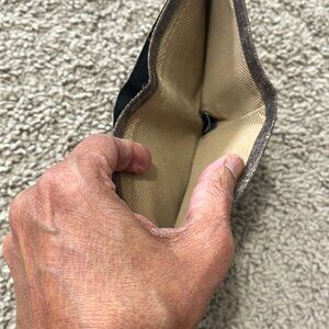 New without tag. Nice wallet mix of lather, plastic and other recsin type material. Very nice not big , not small ,two pocket wallet as in pics.