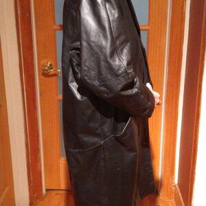 Pelle studio black leather coat black satin lining v neck double lapel 2 button 1 snap closure.... (top button is LOOSE) size L
