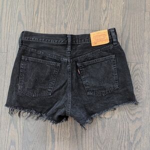 Cute pair of black Jean shorts from Levi. They are size 28, in good condition, the frayed hem can be trimmed as needed.