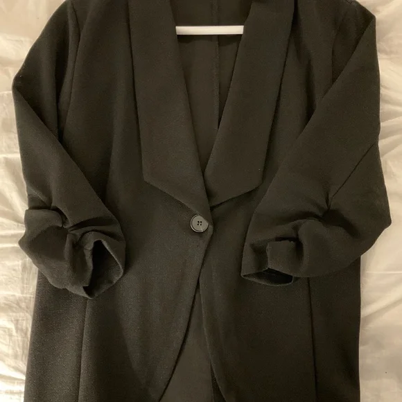 BeYove jacket made of polyester and spandex. Never worn. Black, One button lapel. XL. The back of the jacket has tailored lines for additional features. This jacket has never been worn.