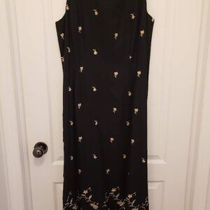 Beautiful vintage full length black linen, fully lined, dress with delicately embroidered flowers in size 14. Worn once, in mint condition.