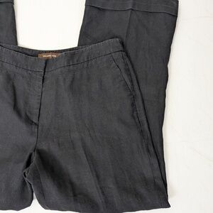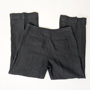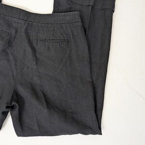 Black Linen Wide Leg Pants Tailored Structured Mid Rise Textured Lined Long