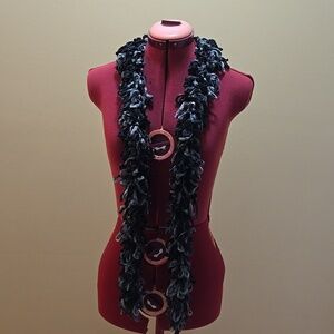 Add a bit of fun to your outfit with this stylish black loopy scarf. Perfect accessory for any jacket