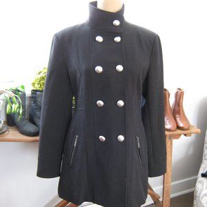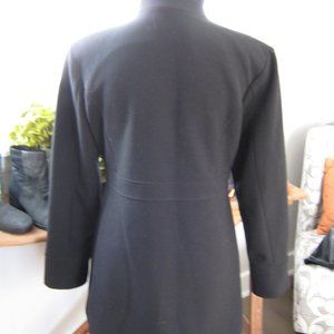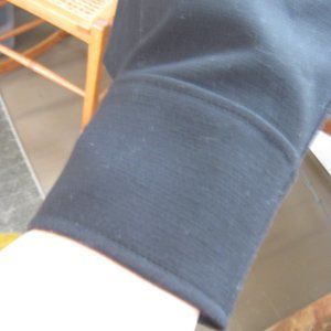 Plain cuff on sleeves, light padding/shaping on shoulders.