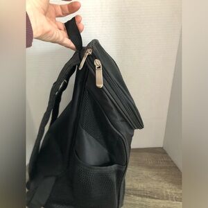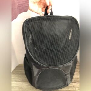 Stylish and versatile black mesh backpack for dogs or cats. Perfect for daily use and travel. Very breathable for them. Secure zippered top ensures that they are safe and sound in the bag. Backpack straps. Could also be worn in the front.