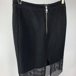 H&M black mesh pencil skirt with lining attached. Back zipper closure. Length hits above the knee. Size: 4