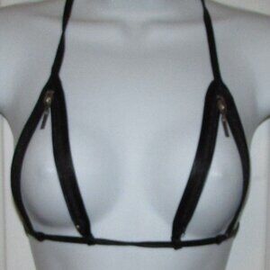 String top with halter neck strap and adjustable ties at back - little coverage cups (or none at all with zippers open)