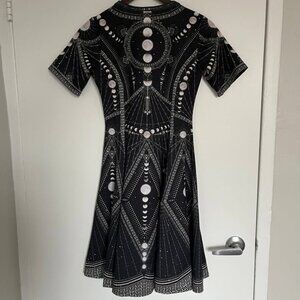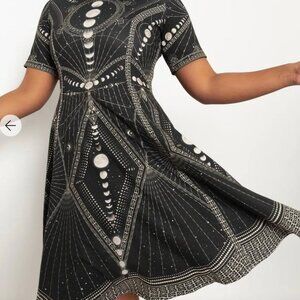 Beautiful and form flattering dress from the iconic brand Black Milk. This is the Moonphases print in their Longline Evil Tee Dress shape - my favourite with a great swish. It has some stretch so it could likely fit extra small to medium depending on your build.