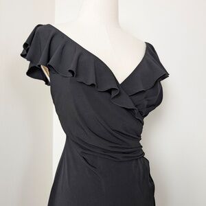 Black Mini Asymmetrical Dress LBD Little Ruffles Sleeveless Short V-neck