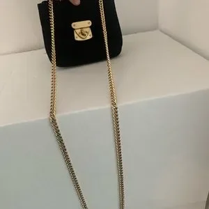 - Black mini handbag - Gold fastener - Gold chain - Adjustable - Pink interior: two small pockets