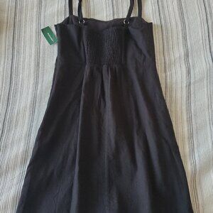 Sleeveless black dress from Twik. New with tags, adjustable shoulder straps and cute ruching on the back and side-zipper. The exterior is 70% rayon and 30% linen, the lining is 100% cotton, perfect for warm spring/summer nights! Would look great with sandals, or casual sneakers. Smoke-free and pet-fee household.