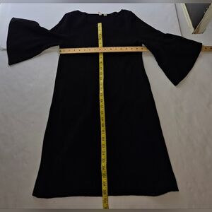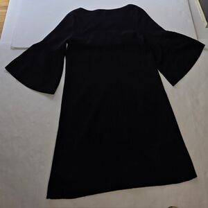Anthropologist Moth dress with 1/2 legnth bell sleeves and round neck. heavier weight fine knit for cool weather. rayon/poly blend with soft cozy feel.