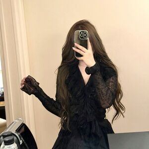 ✨Black Multi-Knit Ruffled Cardigan | Ruffled Trim & Sheer | Statement Piece