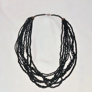 Black Multi-Strand Mixed Beads Choker-Chick/BOHO
