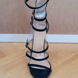 Black Multi-Strap Tied Ankle-Strap Classic High-Heeled Sandals - US 7