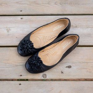 Black naturalizer "Cacy" flats with a little heel and a leather fringe detail. Very comfortable shoes! Size is 7 wide