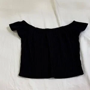 Elevate your style with this chic black off-shoulder ribbed top. Perfect for any occasion, this versatile piece adds a touch of elegance to your wardrobe.