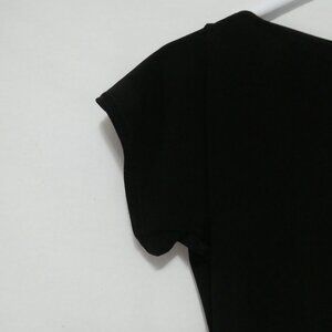 NOTE: cluster of tiny white paint spatter spots on the back of the shirt. Barely visible unless close up. Can wear with a cardigan or in a night club. See last photo