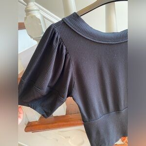 This elegant black ribbed top is perfect for any occasion. Its classic design and comfortable fit make it a versatile addition to your wardrobe.
