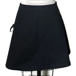 A black organic cotton twill flared skirt with lots of pockets and a back zipper for ease made by my company. There are plastic clips at the flaps of the pockets to keep everything inside secure. This measures 29 inches in the waist meant to be worn lower, 38 inches in the hip and 17 inches long. There is no stretch whatsoever so please check your measurements carefully. This has never been worn by anyone, so it's NWOT