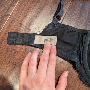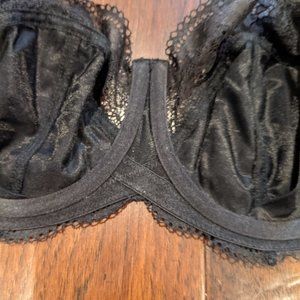 Pretty lacey Panache Clara bra in black. Lace overlay has slight purple-y undertones. Size 30FF. Excellent barely used condition - I purchased at the start of March 2020 and wore it maybe 3 times because who wears underwire during a pandemic? Now it doesn't fit.