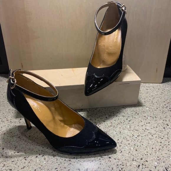 Black Patent Leather Ankle Strap Heels Size 6 Massimo Baldi