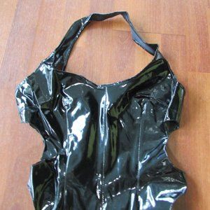 Black Patent Shiny Vinyl Cutout Sides Catsuit