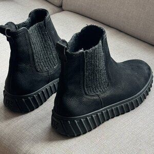 Chelsea boots in soft black nubuck/leather. Worn just once indoors - no signs of wear. Gorgeous version of a classic style, they are easy to pull on and versatile. Cozy lining perfect for fall or winter.