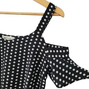 Black Peekaboo Cold Shoulder Blouse Top Polka-dot Tank Top Size MED