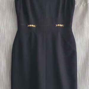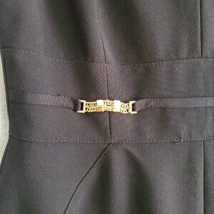 Black Pencil Dress Notched Round Neckline Gold Accents Office Siren Classic