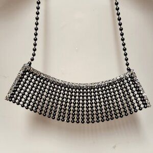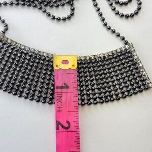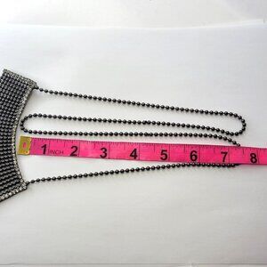 10 rows or tiny black beads framed with tiny shimmering crystals