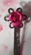 • Each earring features a delicate pink floral stud detail with black wire accents.