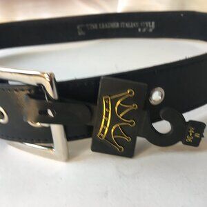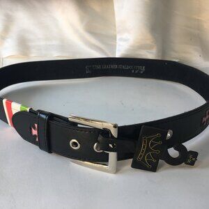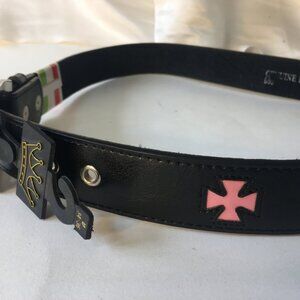 Black Pink Genuine Leather Belt Iron Maltese Cross Made in Italy Med 34" - 36"