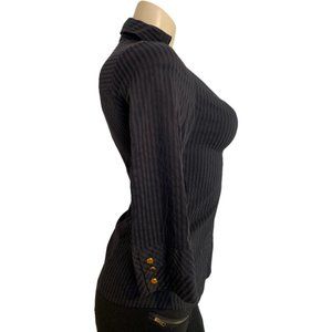 Women's Black Pinstripe Blouse with 3/4 Sleeves.