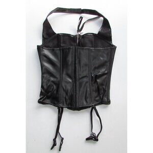 Black faux leather pleather zipper and lace up front corset set